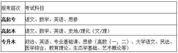 选择报考层次(高起本/专升本)、报考专业、考试科目、报名点;