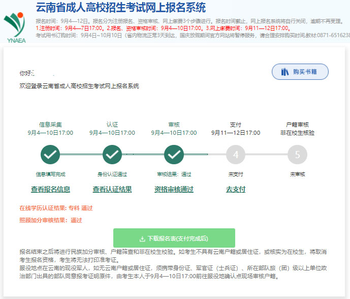 1、报名时间(具体时间以云南招考频道当年报考简章公布的时间为准) : 每年约8月下旬网上报名,9月初现场或网上确认。