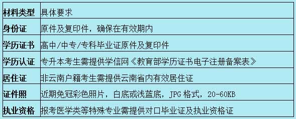 非云南户籍考生需提供云南省有效期内居住证,否则无法通过审核;