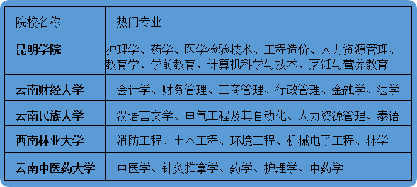 选择院校(如:云南财经大学、云南中医药大学、西南林业大学等)及专业。