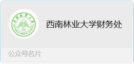 第一步:使用手机微信搜索微信公众号“西南林业大学财务处”,点击关注;