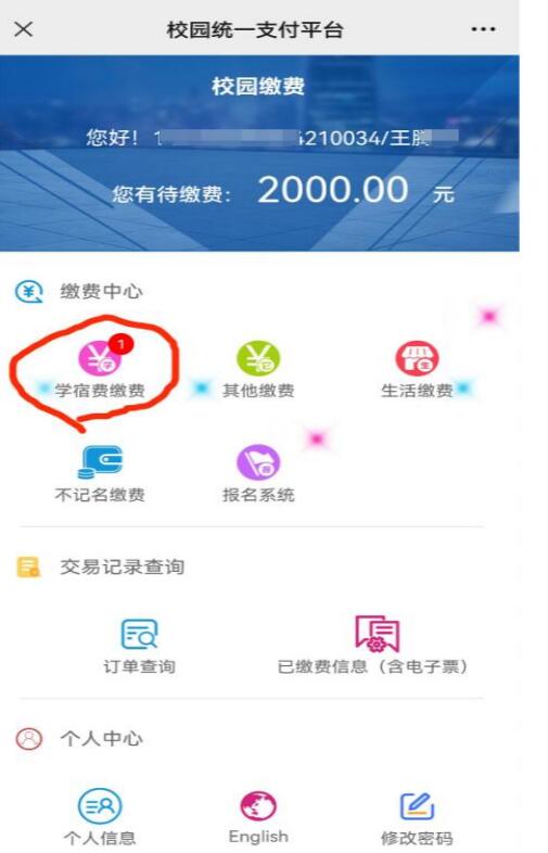 第五步:点击“学宿费缴费”,选择相应年份学费(每年交一次)