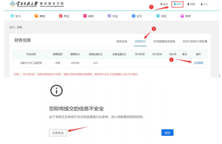 注:如缴费时跳转提示弹窗,点击【仍然发送】