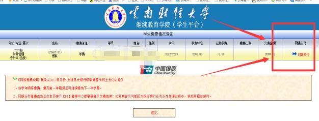 云南财经大学系统交费流程(电脑端)