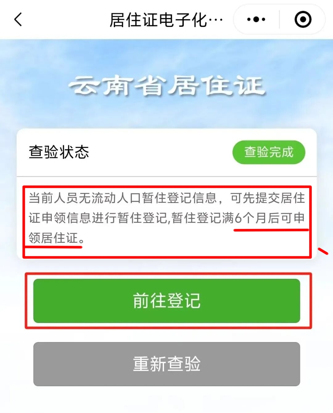暂不符合居住证申领条件的:如从未在昆明申领过居住证,则需要先进行暂住登记,暂住登记满6个月之后才可申领居住证。