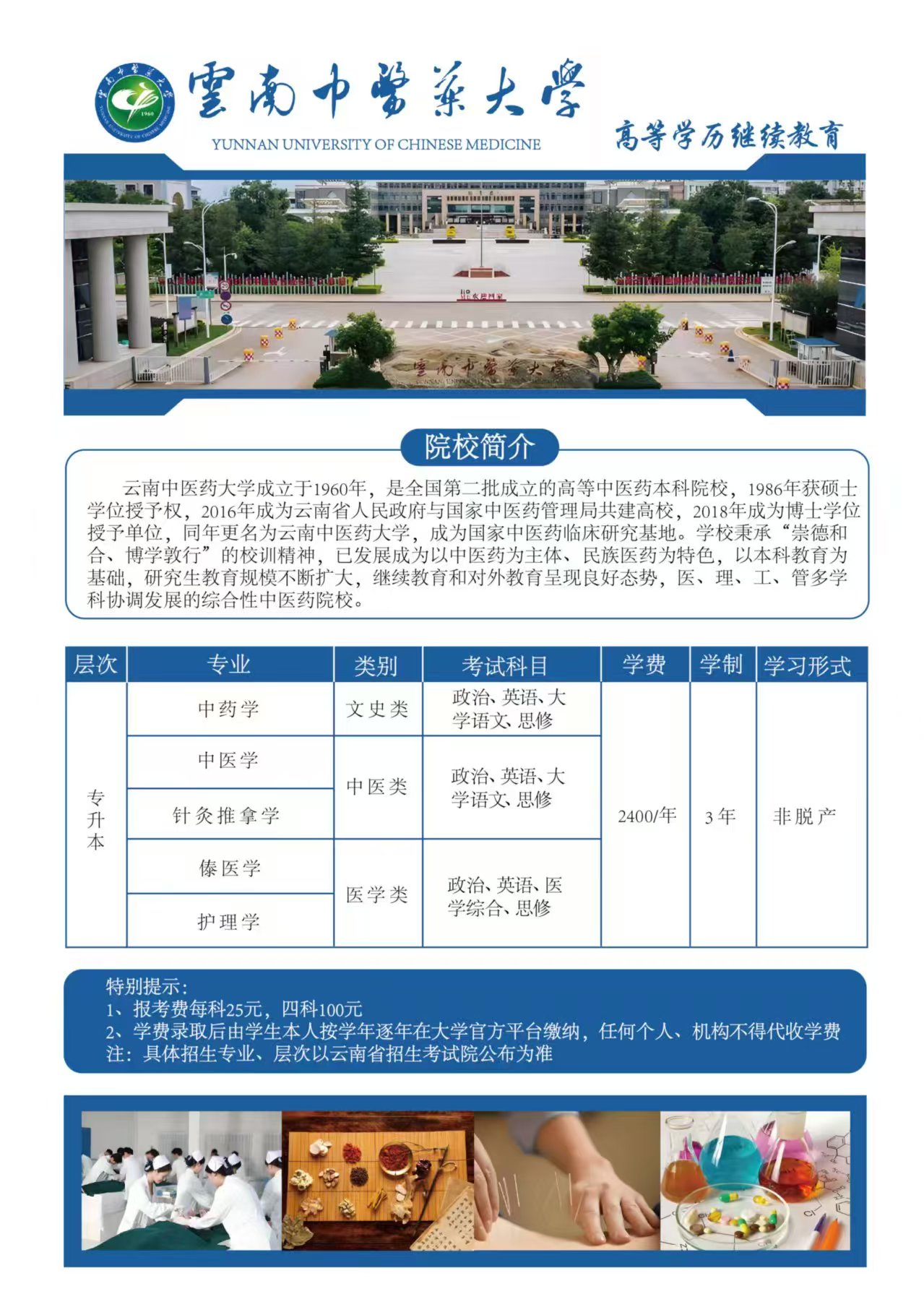 中医学:云南省唯一授权成考单位,想学正统中医的必选。