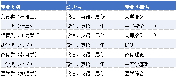 四、云南成考部分专业考试科目参考(专升本)
